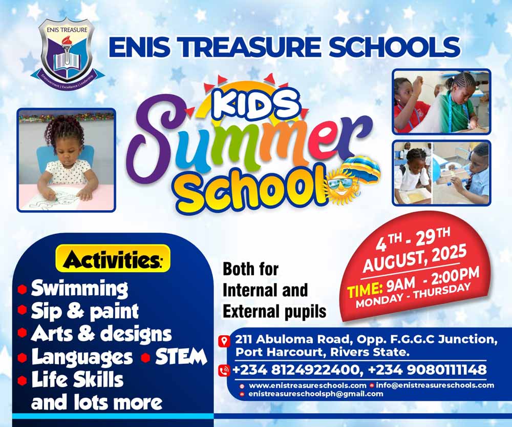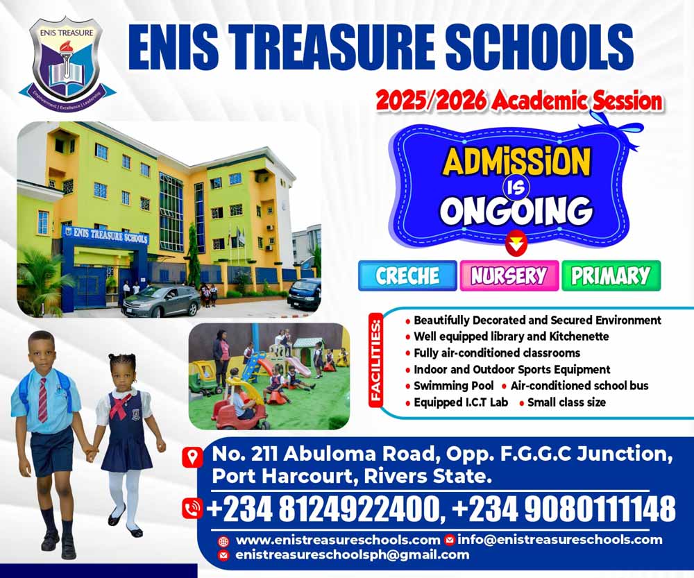 ENIS Treasure Schools, founded in 2013 in Port Harcourt as a modest crèche, has grown into a thriving Nursery and Primary institution dedicated to delivering quality education and strong moral values. At ENIS, we believe every child is a treasure, unique and full of potential, and we are committed to nurturing that potential through a supportive and inspiring learning environment.